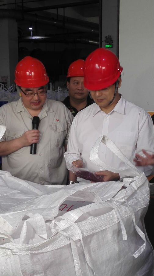 銀億集團(tuán)公司副總裁施偉光專程從寧波趕來、廣西公司董事長王小豐、常務(wù)副總張學(xué)飛等公司領(lǐng)導(dǎo)熱情接待莫恭明書記一行,并陪同參觀了鈷鹽車間。