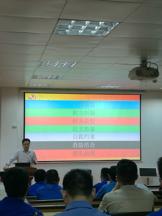 課程分三個部分組成,首先是為什么要加強黨風(fēng)廉政廉潔建設(shè)?重點是怎樣去加強黨風(fēng)廉政廉潔建設(shè);最后是讓生命激情燃燒!加強黨風(fēng)廉政廉潔建設(shè)是全黨的重要任務(wù),企業(yè)健康發(fā)展要有一身正氣且廉潔奉公的干部,筑牢廉潔從政的“防護堤”。章書記強調(diào),廉政廉潔建設(shè)首先心中要有一個堅定的信念;對黨忠誠,愛黨,愛國,愛司,愛家。要耐得住寂寞要兩袖清風(fēng);廉潔自律,清風(fēng)常存。做好三心工程;“反腐要有恒心,廉政要有決心,對自己要有信心”,落實好四種責(zé)任;自律責(zé)任,教育責(zé)任,監(jiān)督責(zé)任,查處責(zé)任。堅持五個到位;工作指導(dǎo)到位,責(zé)任明確到位,制度修訂到位 ,問責(zé)追究到位 ,監(jiān)督落實到位。發(fā)布六項禁令;嚴禁用公款搞相互走訪、請客送禮,嚴禁向上級部門送土特產(chǎn),嚴禁違反規(guī)定收送禮品禮金及有價證券,嚴禁亂發(fā)錢物、講排場、比闊氣、搞鋪張浪費,嚴禁吃,拿,卡,要,報,推諉扯皮,嚴禁組織并參與一切違規(guī)違紀違法活動。制定七大機制;一崗雙責(zé),權(quán)力制衡 ,財務(wù)監(jiān)管,民主監(jiān)督,自我約束,查防結(jié)合源頭治理。