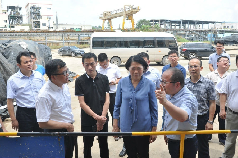 10點(diǎn) 45分,自治區(qū)黨委常委、副主席嚴(yán)植嬋一行首先來到了制磚廠,在自治區(qū)環(huán)保廳黎明副廳長(zhǎng)、玉林市祝小東副市長(zhǎng)、博白縣羅培球縣長(zhǎng)、龍?zhí)懂a(chǎn)業(yè)園黃維書記、銀億公司董事長(zhǎng)王小豐等相關(guān)部門領(lǐng)導(dǎo)的陪同下,對(duì)廢渣制磚的處理工藝和廢渣的處理情況進(jìn)行實(shí)地考察調(diào)研。