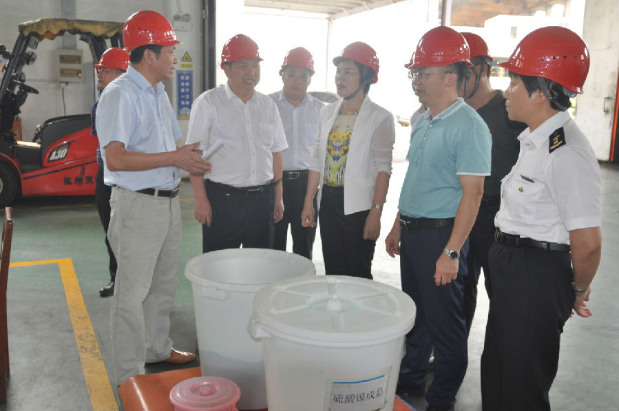 章群宏副總經(jīng)理向呂劍楓副市長一行介紹了企業(yè)落戶龍?zhí)懂a(chǎn)業(yè)園區(qū)以來的發(fā)展歷程,匯報(bào)了企業(yè)目前的生產(chǎn)經(jīng)營現(xiàn)狀、產(chǎn)品供不應(yīng)求的良好勢頭、新能源產(chǎn)業(yè)發(fā)展的前景,我司硫酸鎳目前產(chǎn)能居全國之首,成為國內(nèi)鋰電池基礎(chǔ)原材料生產(chǎn)基地,各項(xiàng)技術(shù)研發(fā)及技術(shù)成果轉(zhuǎn)換得到了很好的應(yīng)用,同時也匯報(bào)當(dāng)前的主要困難,需要市政府出面協(xié)調(diào)解決的問題。調(diào)研中,章副總還與呂副市長一行深入鎳鹽車間實(shí)地調(diào)研,詳細(xì)介紹了我司的生產(chǎn)工藝和產(chǎn)品產(chǎn)線,匯報(bào)了產(chǎn)品市場和收益情況。