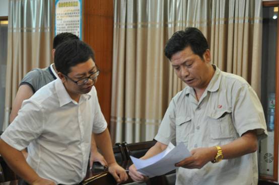 2015年8月21日,博白縣委組織部長吳厚強(qiáng)在龍?zhí)舵?zhèn)人大主席林國偉的陪同下來我司檢查驗(yàn)收非公企業(yè)黨建工作“百日攻堅(jiān)”的落實(shí)情況。