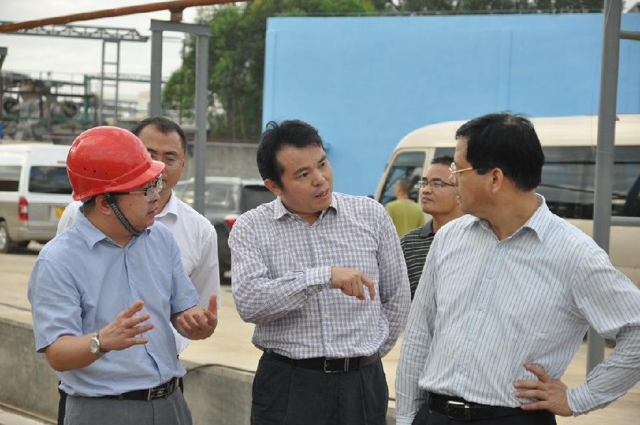 11月17日,自治區(qū)黨委常委、玉林市委書(shū)記莫恭明帶領(lǐng)市縣主要領(lǐng)導(dǎo)在龍?zhí)懂a(chǎn)業(yè)園區(qū)管委書(shū)記黃維的陪同下就企業(yè)環(huán)境保護(hù)工作深入廣西銀億調(diào)研。