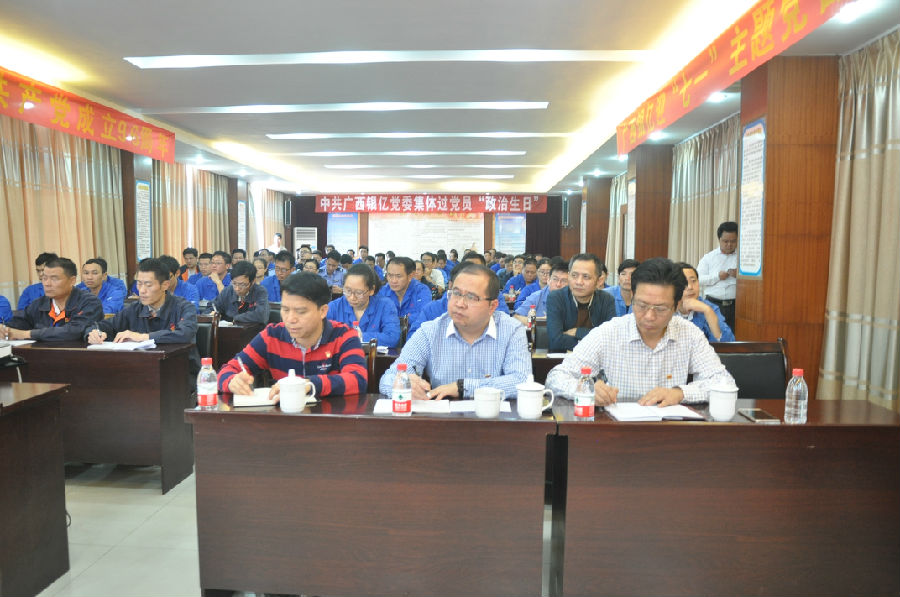 大會開始前,黃政強(qiáng)同志贊揚(yáng)了廣西銀億全體黨員提前十分鐘有序入場就坐的表現(xiàn),對廣西銀億黨員同志的覺悟給予肯定。王小豐副書記號召全體黨員認(rèn)真學(xué)習(xí)、宣傳、貫徹“黨的十九大精神”,學(xué)做結(jié)合,用十九大精神推動廣西銀億健康發(fā)展。