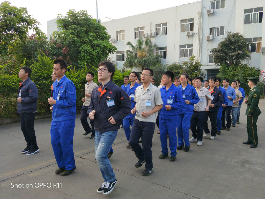 本屆培訓(xùn)班為期一年,每周有課,全部利用晚上的時(shí)間上課,采用公司優(yōu)勢資源,將聘請專家、教授及集團(tuán)金牌講師授課,全力打造一支卓越的干部隊(duì)伍??矗娪?xùn)開始了,每天早晨展現(xiàn)出一道高麗的風(fēng)景線,全體學(xué)員在邊防部隊(duì)吳教官的訓(xùn)教下,隊(duì)列、軍姿、跑步,時(shí)而整齊發(fā)出嘹亮口令:121、1234!宏亮的聲音響徹云霄,久久回蕩……