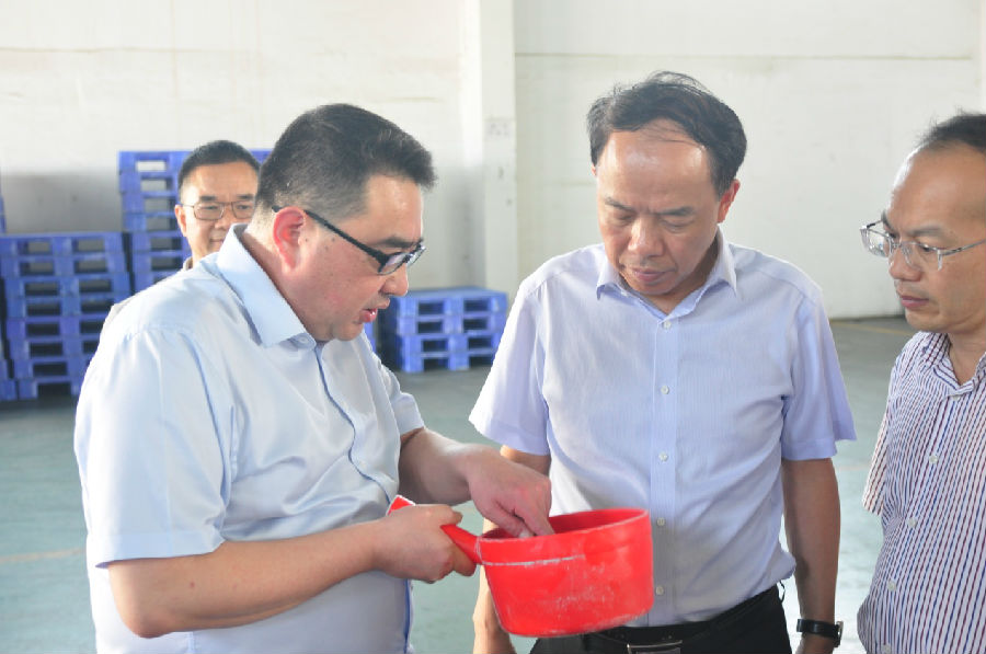 5月17日,肖文勝副市長及玉林市科技局局長一行蒞臨廣西銀億開展科技創(chuàng)新支撐產(chǎn)業(yè)高質(zhì)量發(fā)展調(diào)研。肖文勝副市長一行在公司總經(jīng)理張學(xué)飛、黨委副書記章群宏的全程陪同下參觀了公司成品展示并視察了生產(chǎn)車間。